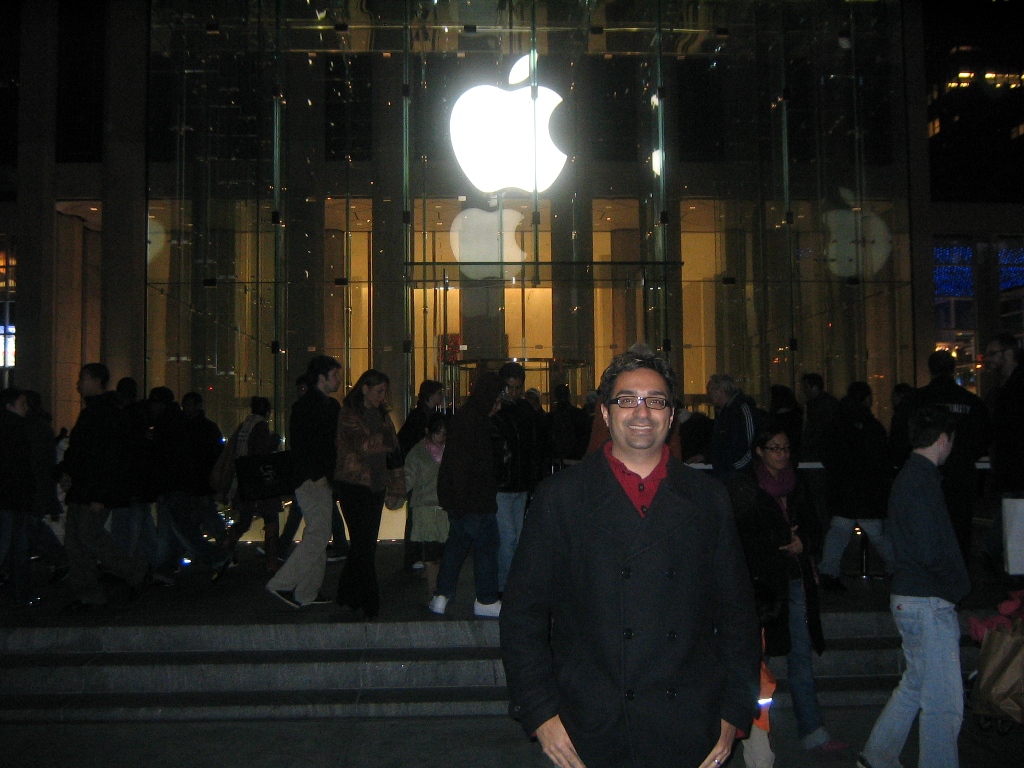These pictures are of the Apple logo hanging in a glass cube on 5th Avenue in New York. This store is open 24 hours a day / 7 days a week / 365 days a year. So, if you ever thought about getting that Product (RED) iPod Nano but can’t go during normal business hours, this is the spot for you.